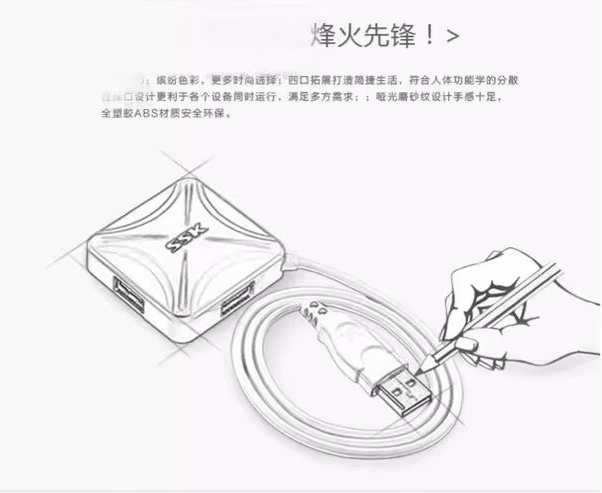 SSK飚王鋒火SHU027 USB 2.0 HUB一拖四集線器4口烽火分線器